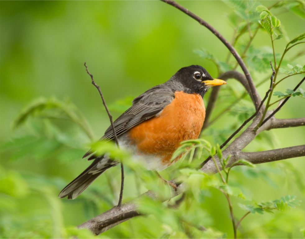 Singing American Robins trumpet the arrival of Spring. Although snowbirds migrate north from warmer climates, winter residents emerge from their quiet, protective flocks. However, they all join together in Spring to feather their nests and start their chirping families. Watch this YouTube video to observe how one of these resilient birds springs back to life after a cold, dreary winter to complete the challenging project of building a nest.